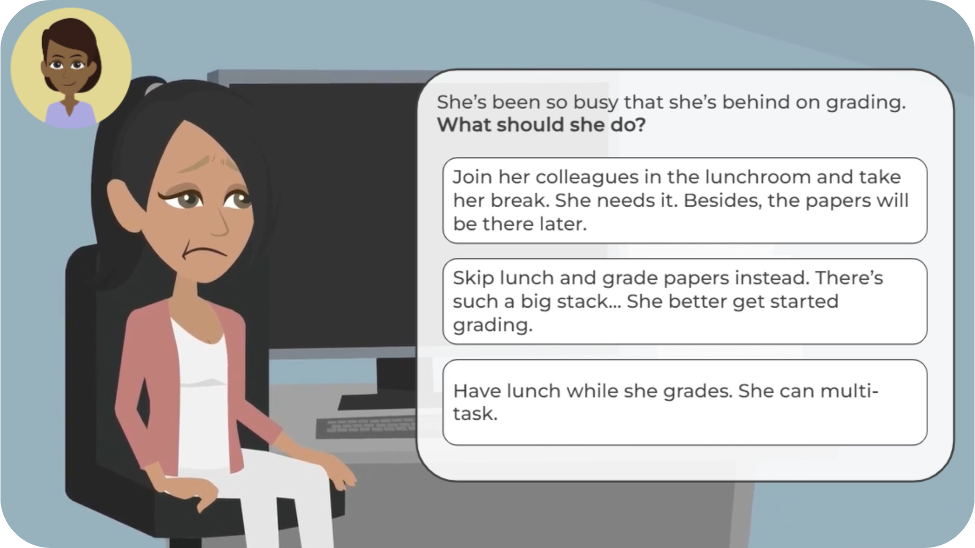 This scenario-based eLearning prepares K-12 educators to navigate the daily demands of teaching by developing decision-making skills that promote well-being and prevent burnout.